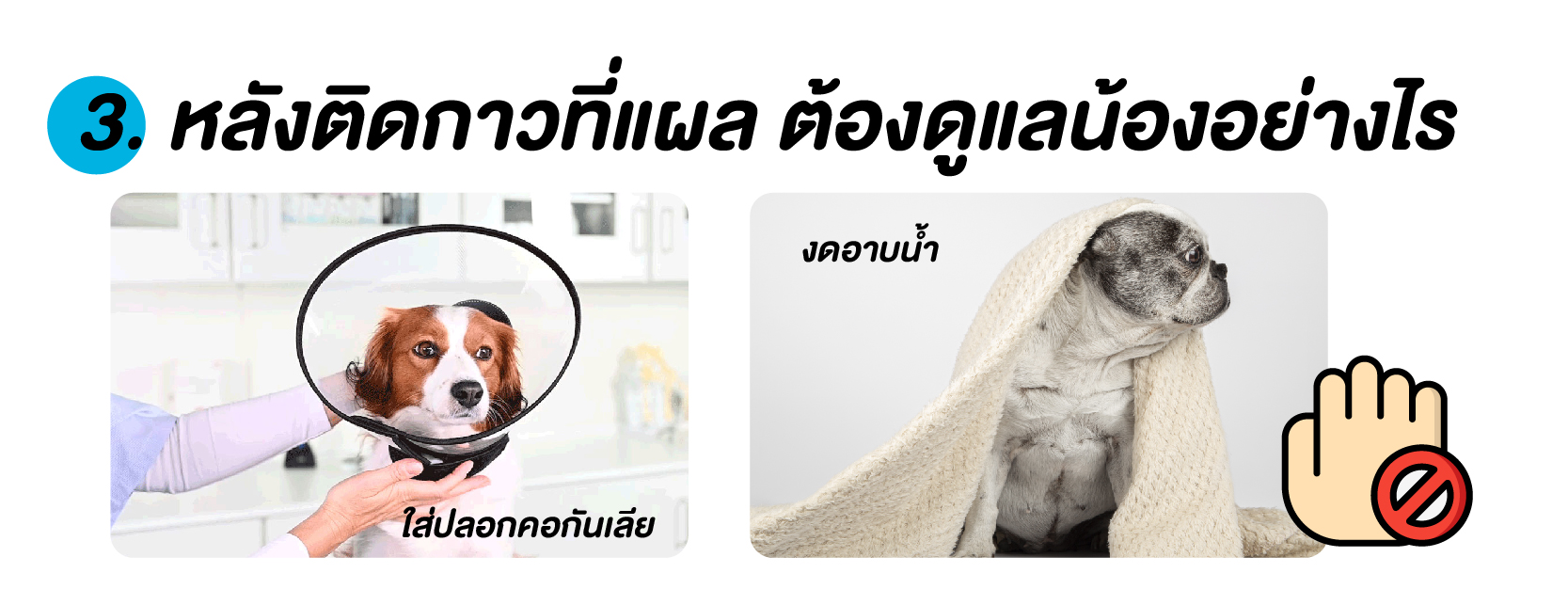 - ใส่ปลอกคอกันเลีย ป้องกันการกัด แทะ หรือเลียแผล