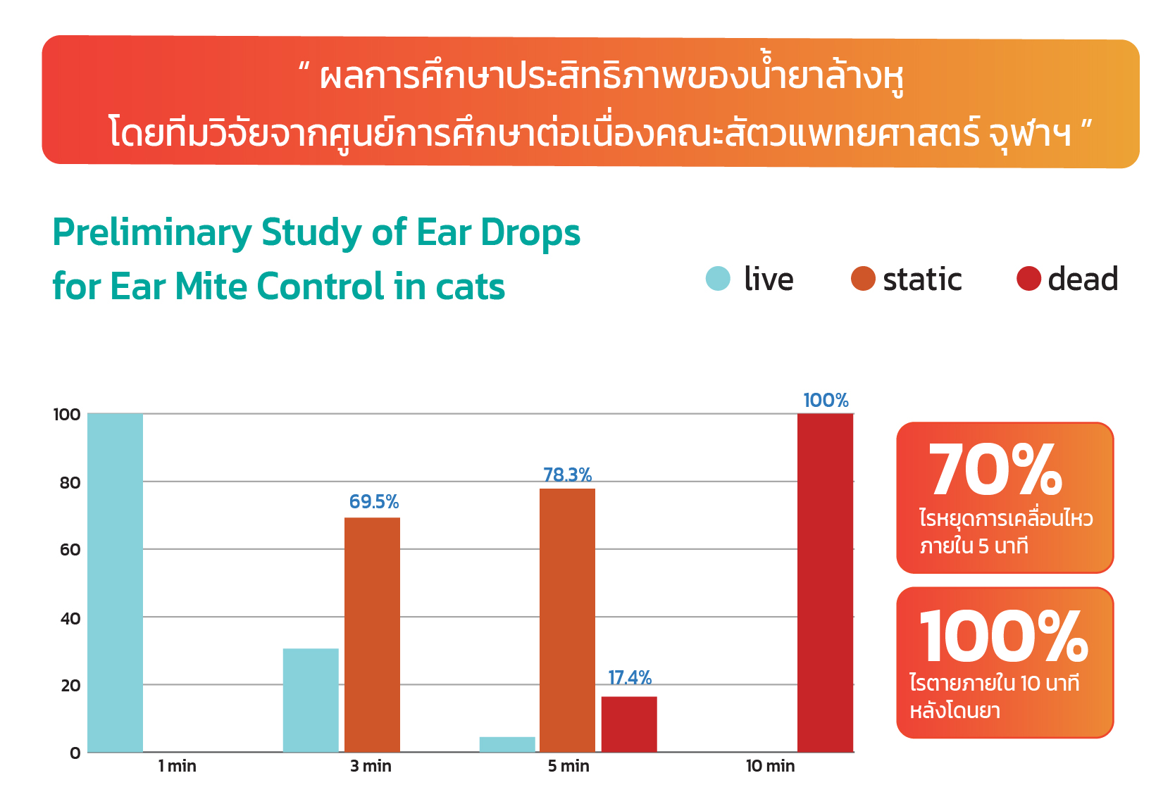 "ผลการศึกษาประสิทธิภาพของนํ้ายาล้างหู โดยทีมวิจัยจากศูนย์การศึกษาต่อเนื่องคณะสัตวแพทยศาสตร์ จุฬาฯ"