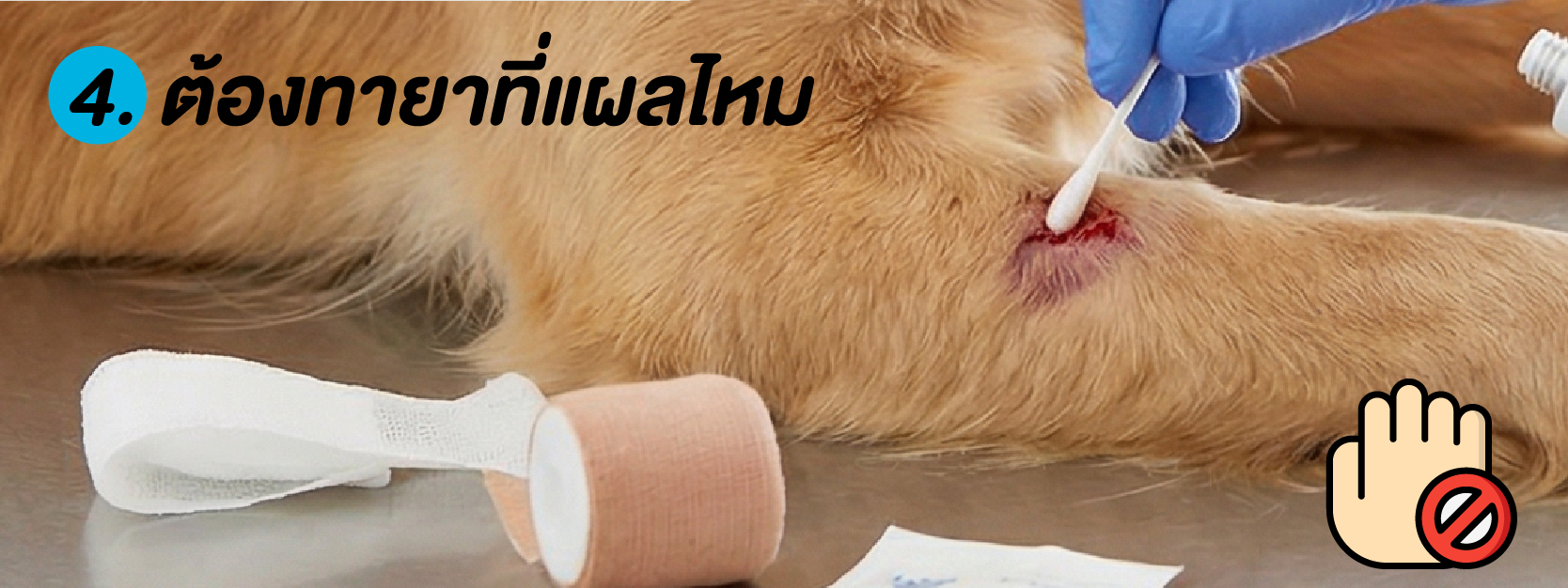 - ใส่ปลอกคอกันเลีย ป้องกันการกัด แทะ หรือเลียแผล