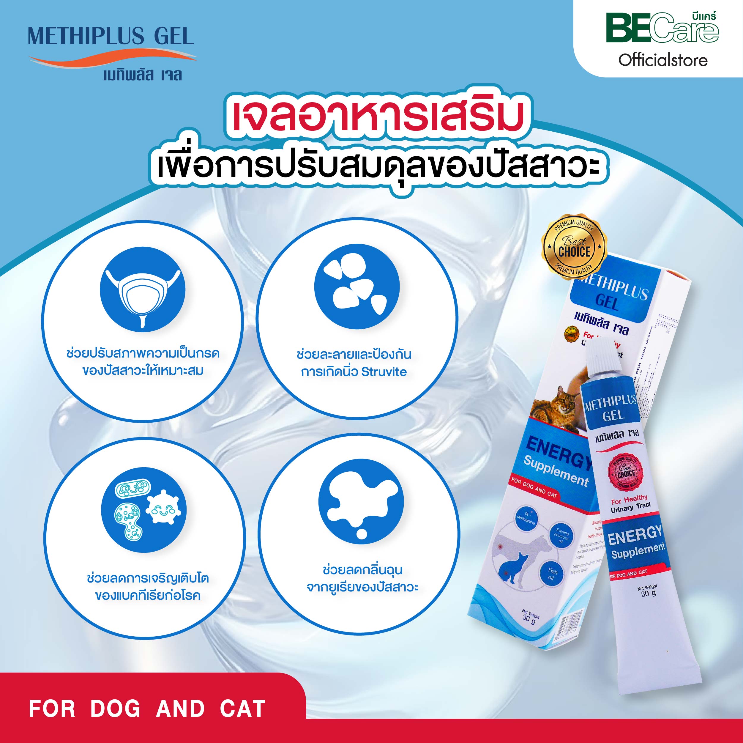 Methiplus gel is a supplemental source of DL-Methionine, which helps maintain a slightly acidic urine pH to promote healthy urinary tract conditions & decrease struvite crystal formation in dogs and cats.
