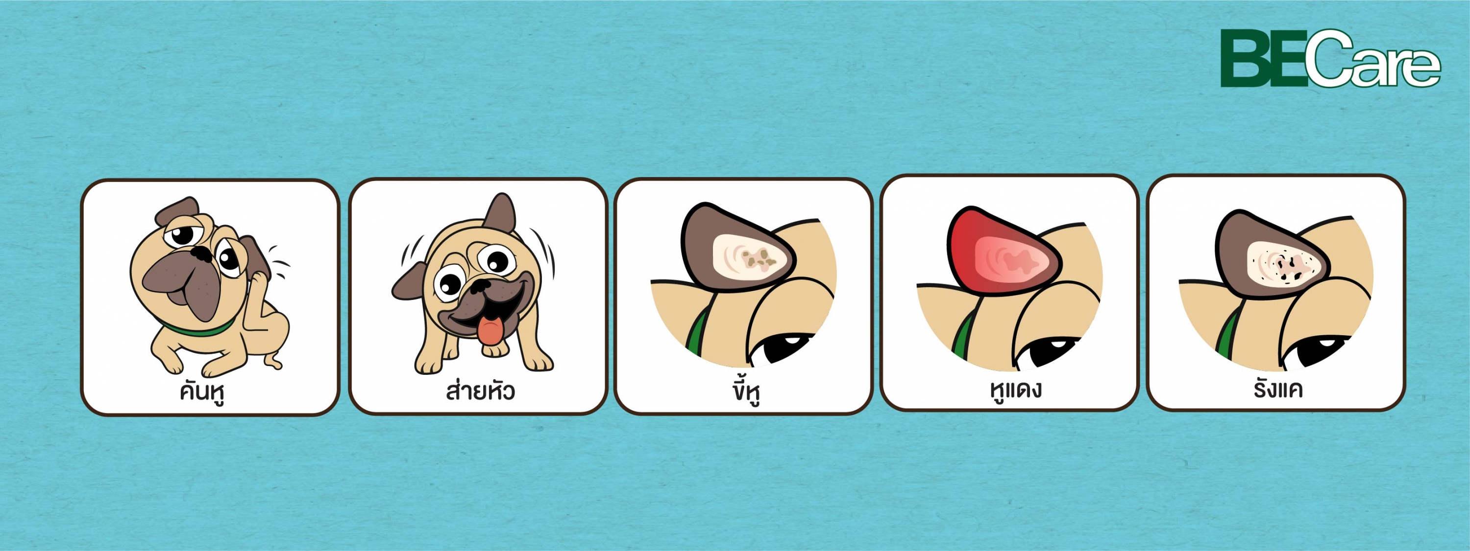 2. อาการ: หูแดง, คัน, สะเก็ดรังแค, มีกลิ่นเหม็นอับ, มีขี้หูเหลืองๆจำนวนมาก สุนัขมักสะบัดหัว เกาหูบ่อยๆ