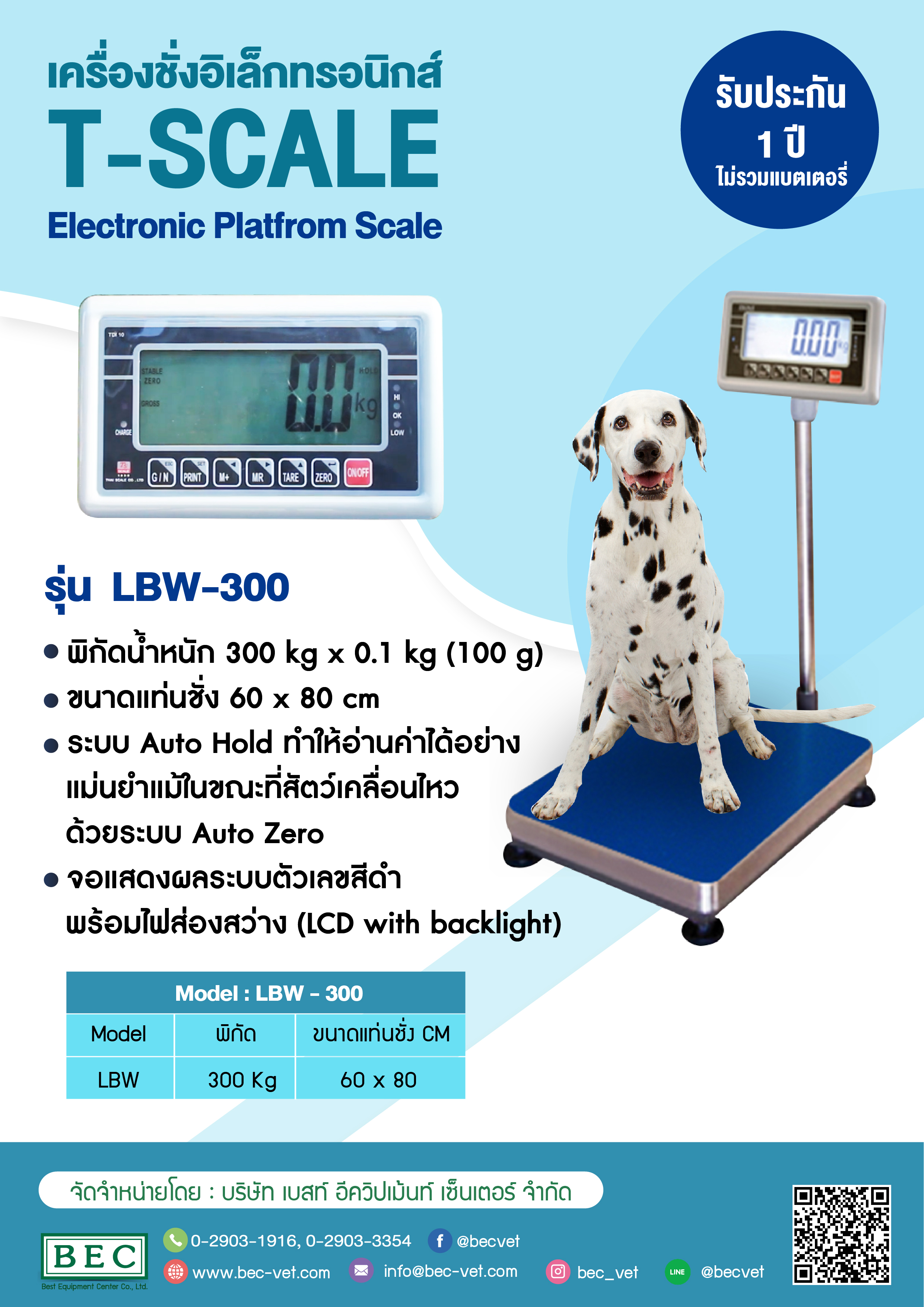 - ชั่งน้ำหนักได้สูงสุด 300 กิโลกรัม / อ่านละเอียด 0.1 กิโลกรัม (100 กรัม)